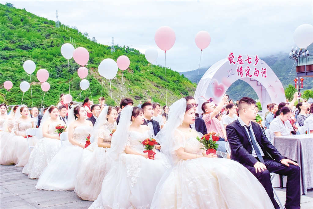 8月29日上午,“愛在七夕·情定白河”2025年白河縣新時代文明實踐集體婚禮主題活動在河街寶石文化廣場浪漫啟幕。來自各行各業(yè)的8對“珍珠婚”夫婦、8對新人齊聚一堂,通過分享婚姻保鮮秘訣、頒發(fā)結(jié)婚證、簽訂承諾書、開展婚姻家庭輔導(dǎo)等簡約而莊重的儀式,在各界代表和親朋好友的見證祝福下,開啟幸;橐鲂缕拢脤嶋H行動踐行婚事新辦、喜事儉辦的文明新風(fēng)尚。(紀道婭 攝)pQy安康新聞網(wǎng)