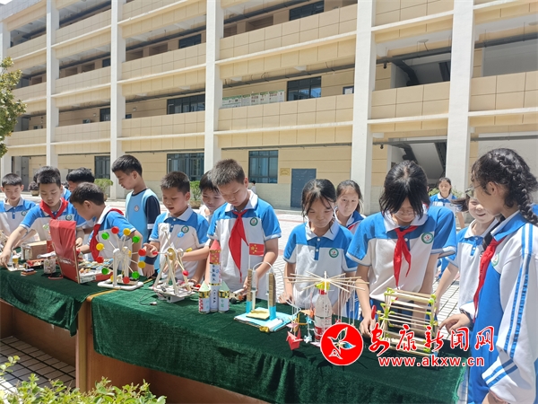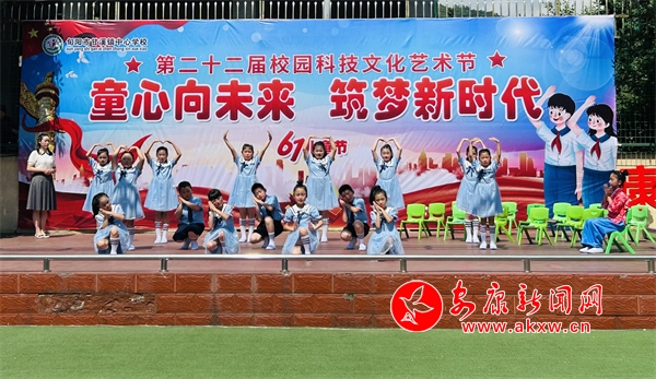 舞臺中央“童心向未來,筑夢新時代”一行醒目的紅色標(biāo)題映入眼簾。少先隊員納新儀式上,黨員教師和輔導(dǎo)員老師共同為新入隊的孩子們佩戴上鮮艷的紅領(lǐng)巾,新隊員們在大隊輔導(dǎo)員的帶領(lǐng)下莊嚴(yán)地宣誓。各班、各社團(tuán)精心編排的文藝節(jié)目依次上演,精彩的節(jié)目引起陣陣歡呼,掌聲響成一片。隨后,還組織了學(xué)生書畫和科技小制作展覽,大家不時駐足觀看,燦爛的笑容匯成校園里一道亮麗的風(fēng)景。