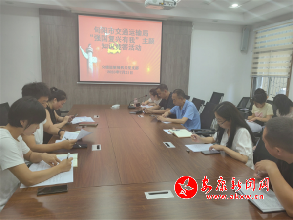 本網(wǎng)訊 為深入學(xué)習(xí)貫徹黨的二十大精神,深化“強國復(fù)興有我”群眾性主題宣傳教育活動,進一步激發(fā)系統(tǒng)黨員群眾愛黨、愛國熱情,教育引導(dǎo)黨員群眾堅定理想信念,凝聚奮進力量,筑牢初心使命;激發(fā)黨員群眾干事創(chuàng)業(yè)激情,牢固樹立高質(zhì)量項目建設(shè)和高品質(zhì)運輸服務(wù)“雙高”理念。近日,旬陽市交通運輸局結(jié)合主題黨日活動,突擊組織機關(guān)30余名黨員干部開展“強國復(fù)興有我”主題宣傳教育知識競答活動。