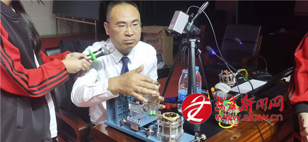 講座的亮點(diǎn)之一是關(guān)于“三相交流鼠籠式異步電動(dòng)機(jī)”的現(xiàn)場(chǎng)實(shí)驗(yàn)展示。嵇教授首先通俗易懂地闡釋了該類(lèi)型電動(dòng)機(jī)作為現(xiàn)代工業(yè)核心的重要地位及基本原理,隨后現(xiàn)場(chǎng)演示實(shí)驗(yàn)過(guò)程,逐步解析其內(nèi)部結(jié)構(gòu)、旋轉(zhuǎn)磁場(chǎng)的形成機(jī)制,以及“鼠籠”轉(zhuǎn)子實(shí)現(xiàn)電能與機(jī)械能高效轉(zhuǎn)換的原理。抽象難懂的電磁學(xué)知識(shí),在直觀(guān)的演示與生動(dòng)的講解中變得清晰可感。嵇教授還引導(dǎo)同學(xué)們思考該項(xiàng)技術(shù)在各行各業(yè)的廣泛應(yīng)用,切身感受科技對(duì)社會(huì)發(fā)展的深遠(yuǎn)影響。這一環(huán)節(jié)有效激發(fā)了同學(xué)們對(duì)工程技術(shù)的興趣與對(duì)科學(xué)原理的探索熱情。